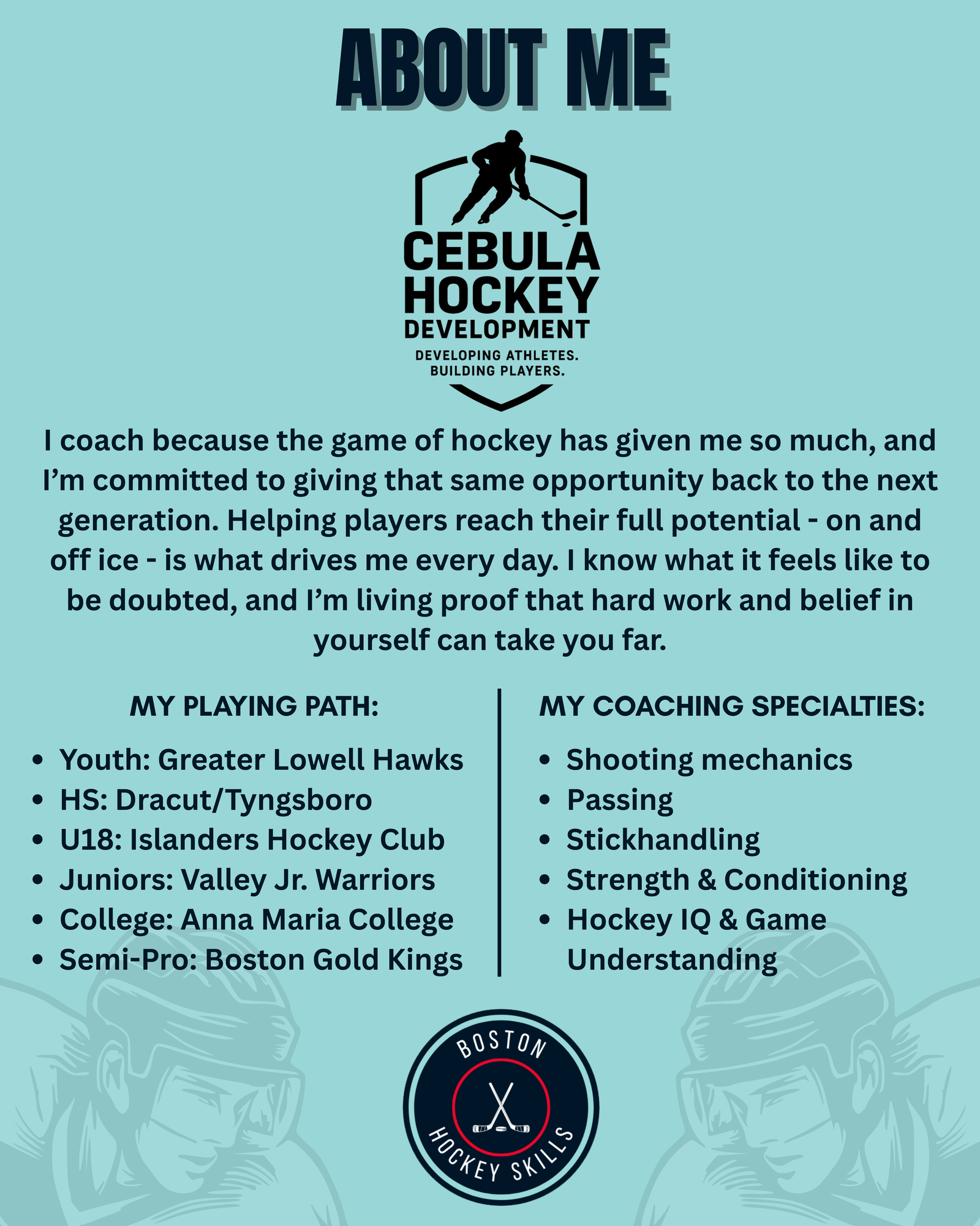 Private Hockey Lessons, Strength & Conditioning, and Small Team Training.